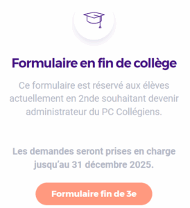 Lorsque vous quittez le collège en fin de 3e, vous pouvez devenir administrateur du PC Collégiens. Pour cela, complétez le ...